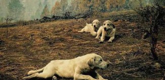 Dogs Stand Guard, Hold Vigil for Fawn Overcome by Wildfire