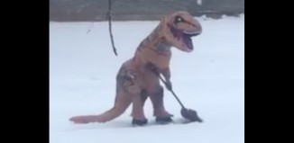 Neighbor Films T-Rex With Tiny Hands Trying To Shovel Driveway